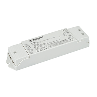 Универсальный 2-канальный диммер для управления одноцветными (DIM), двухцветными (MIX) светодиодными лентами и другими источниками света с напряжением питания 12-48В в протоколе DALI DT6/DT8. Основные функции: включение и выключение света, регулировка яркости и цветовой температуры. Устройство имеет входной сигнал DALI, 2 адреса устройств в режиме DT6 и 1 адрес в режиме DT8. Наличие клемм Push-Dim для управления с помощью возвратных нажимных выключателей. Питание диммера имеет диапазон напряжений от 12В до 48В, максимальный ток 10А на 1 канал, максимальная мощность 240-768Вт (в зависимости от напряжения питания и частоты ШИМ). Габариты диммера составляют 175х45х27мм, корпус изготовлен из пластика белого цвета.