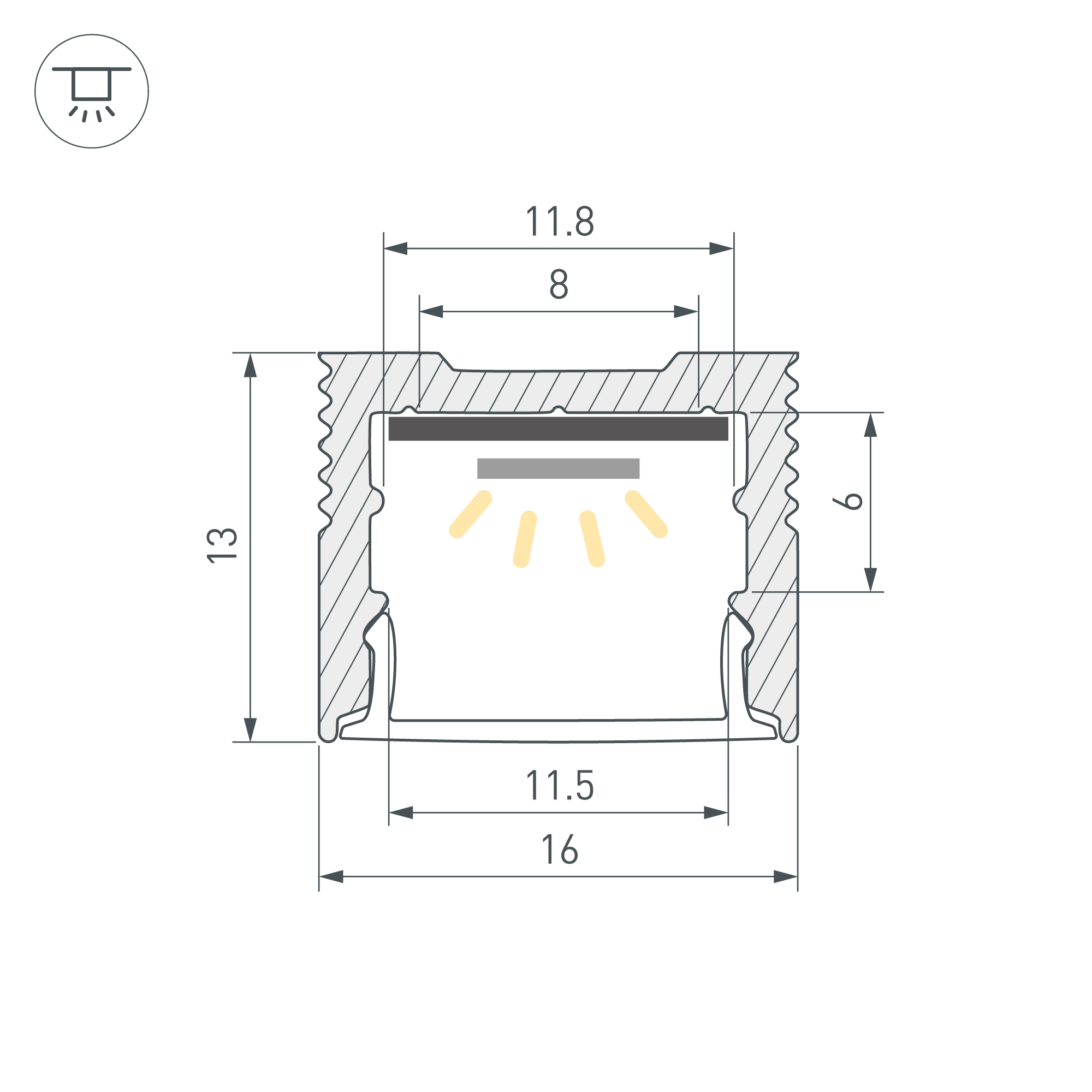 Комплект с экраном. Алюминиевый анодированный профиль для светодиодных лент и линеек. Габаритные размеры (L×W×H): 2500x16x13 мм. Ширина площадки для ленты 11,8 мм. Аксессуары приобретаются отдельно. Упакован в картонный тубус диаметром 31 мм.